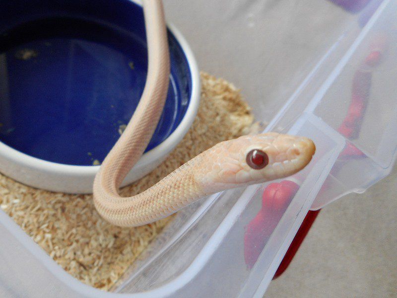I fell in love with her pattern. It's amazing! She is very shy but eats well. I hope she will calme down and became mate of Mushu - they could have classic, amel, anery and even snow tessera offsprings.